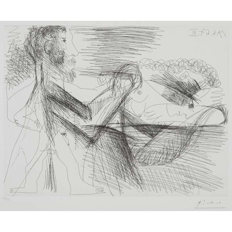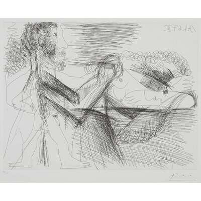 Pablo Picasso (Spanish, 1881-1973) Homme Assis Près d'une Femme Allongeé
