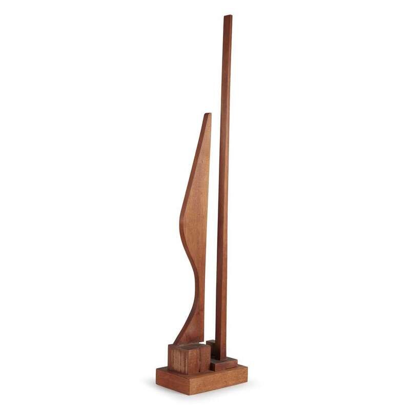 Incised with artist's signature and dated 77 at the base of the tallest wooden element, wood assemblage.