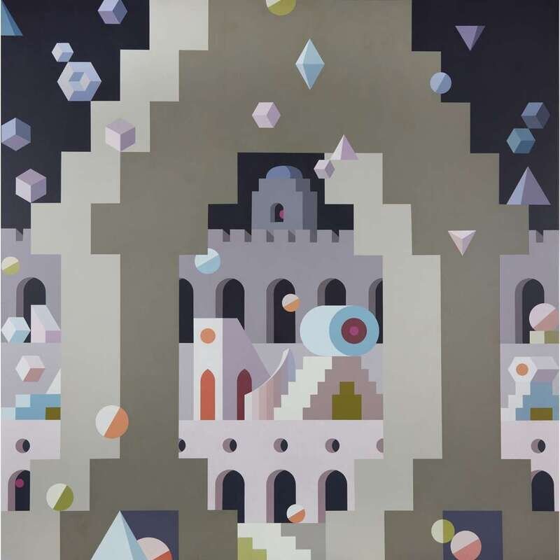 Signed with artist's initials bottom left, signed again, titled and dated '1992' on canvas overhang verso, acrylic on canvas.