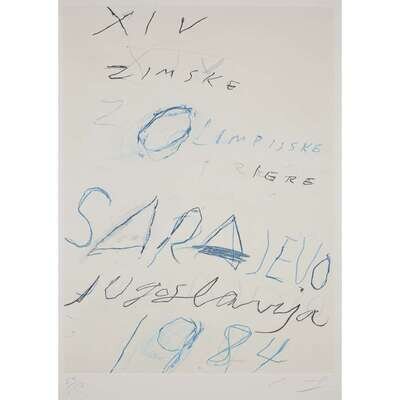1983, pencil signed with initials and numbered 59/150 (there were also 12 artist's proofs and an edition of 50 in Roman numerals), with full margins, published by Visconti Art Spectrum, Vienna for the Yugoslavian Olympic Committee on the occasion of the Winter Games in Sarajevo. Color aquatint and lithograph on heavy wove paper.