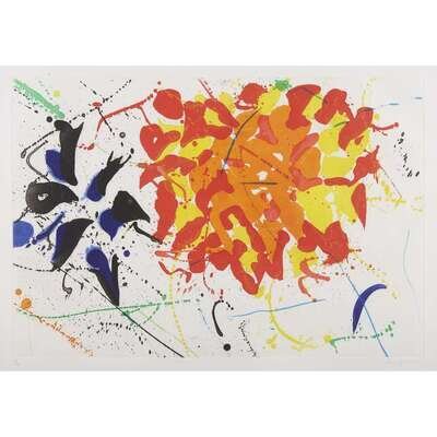 1992, pencil signed and numbered 18/75 (there were also 30 artist's proofs), the full sheet, 2RC Edizioni d'Arte, Rome, publisher and with their blindstamp. Color etching, aquatint and drypoint with embossing on Fabriano.