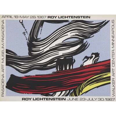 1967, published by Poster Originals, Ltd., New York for the exhibition "Roy Lichtenstein" at the Pasadena Art Museum, California, April 18 - May 28, 1967. Color screenprint poster with printed text on wove paper.
