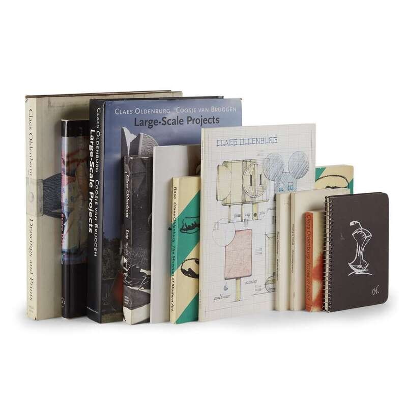 Claes Oldenburg: Sculptures & Lithographs at Gemini 1988-91; Claes Oldenburg: Notes in Hand; Oldenburg: Works in Edition, Margo Leavin Gallery [2 copies]; Claes Oldenburg: Photo Log and Press Log (2 vols.); Claes Oldenburg: Drawings, Watercolors and Prints, Moderna Museet, Stockholm; Barbara Rose, Claes Oldenburg, The Museum of Modern Art, New York; Claes Oldenburg and Coosje van Bruggen, Things Around the House, Paula Cooper Gallery; Claes Oldenburg and Coosje van Bruggen, Large-Scale Projects; Claes Oldenburg and Emmett Williams, Store Days: Documents from The Store (1961) and Ray Gun Theater (1962) [signed by the artist]; Gene Baro, Claes Oldenburg: Drawings and Prints.