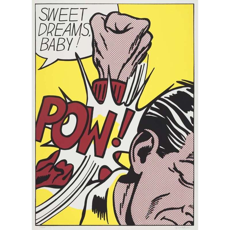 In her forward to the The Prints of Roy Lichtenstein: A Catalogue Raisonné, Ruth Fine writes, "Lichtenstein has said he thinks of his 11 Pop Artists prints as his first "true" Pop prints, the ones that were really done as prints." In the present work, contributed to the third volume of 11 Pop Artists, Lichtenstein's primary subject and emphasis is text, rather than pictorial narrative of who delivers the punch and why. Here, the words 'POW!' and 'Sweet Dreams, Baby' exemplify perfectly what Fine describes as the artist's juxtaposition of "a verbal-visual language, both as a cartoon-bubble conversation device and to suggest sound, referred to as 'audioscription' by the artist ("Wham," "Crak," "Pow"), presenting the issue of language and its formal properties in a very different context than it has been used."