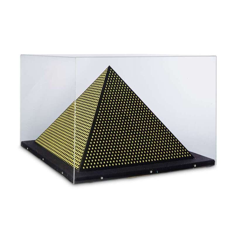 1968, pencil signed and numbered 28/300 (approximately 50-100 were released, there were also a few artist's proofs), published by the artist. Color screenprint on lightweight board folded into a three-dimensional pyramid.