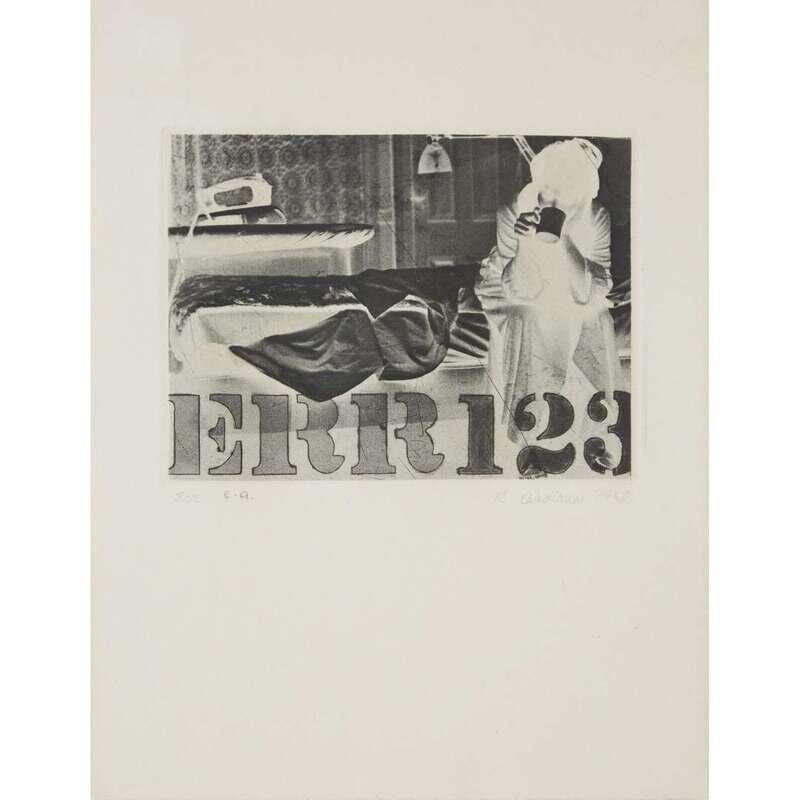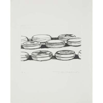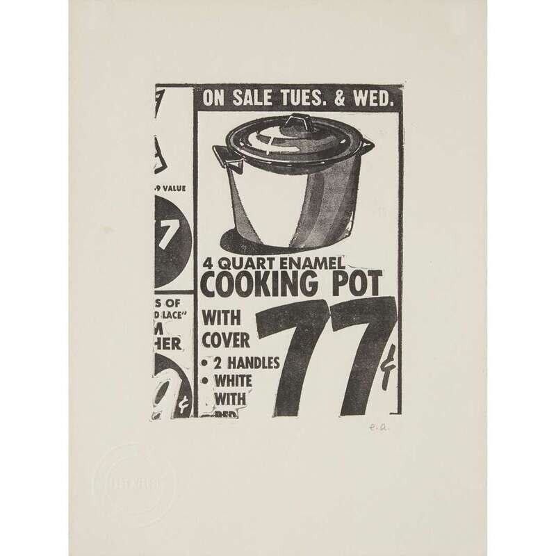 Wayne Thiebaud, "Yo-Yo's"; James Rosenquist, "Certificate," (Glenn, 1); Claes Oldenburg, "Orpheum Sign," (Axsom & Platzker, 14.1); Robert Indiana, "Err," (Sheehan, 29); Roy Lichtenstein, "On," (Corlett, 32); Red Grooms, "Untitled," (Knestrick, 13); Jim Dine, "Corner Brace," (Gallery Mikro, 17); Andy Warhol, "Cooking Pot," (Feldman & Schellmann, 1).