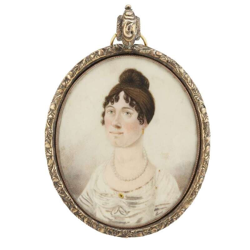 American School 19th century Portrait miniature of a lady in white dress, circa 1815