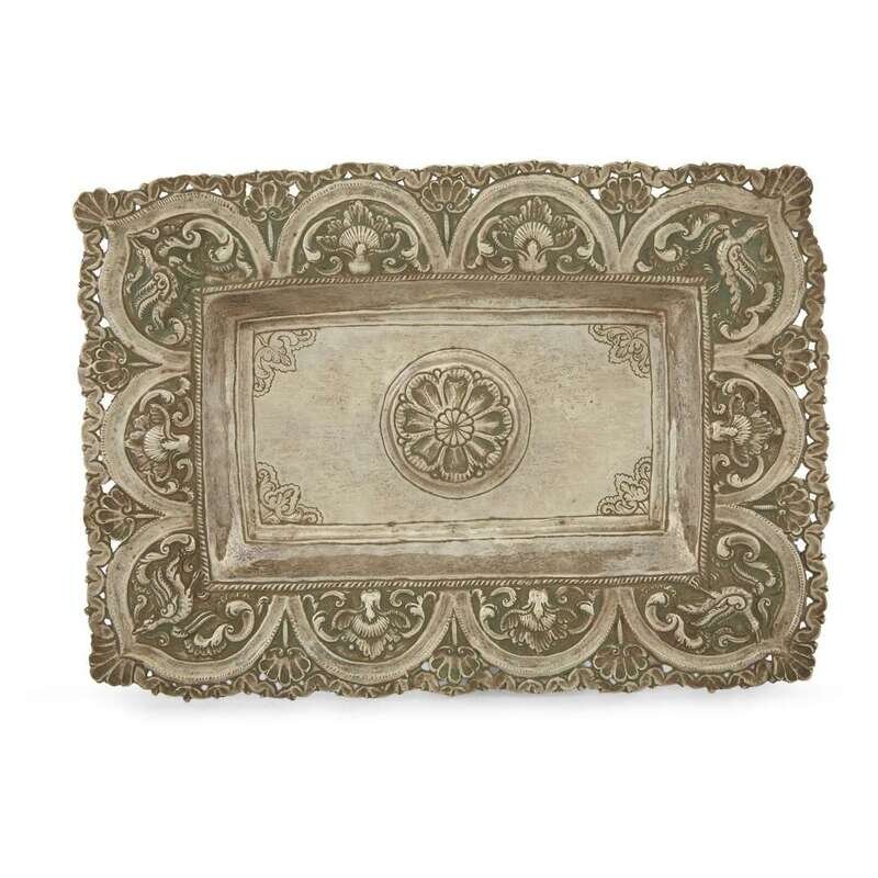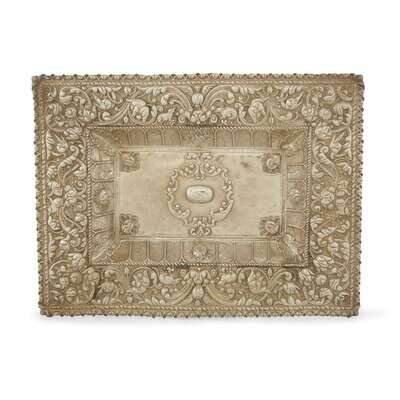 Three Spanish Colonial silver repoussé rectangular sideboard dishes Possibly Potosi, Bolivia, early 18th century