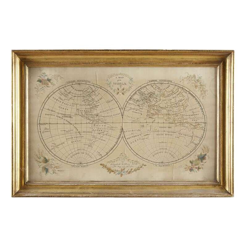 Needlework Map of the World "Elizabeth Willson, finished this map in her 16th year, a.d. 1815", Pennsylvania