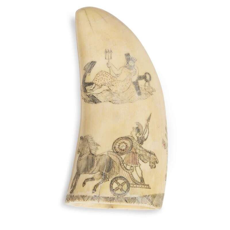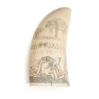 Scrimshaw-decorated and polychromed whale tooth 19th century