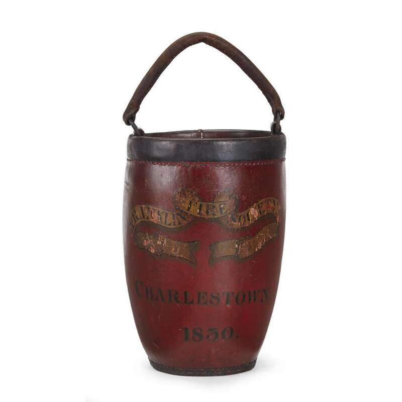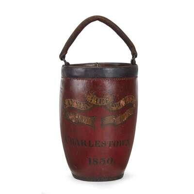 Paint-decorated 'Franklin Fire Society' leather fire bucket Charlestown, MA, dated "1830"