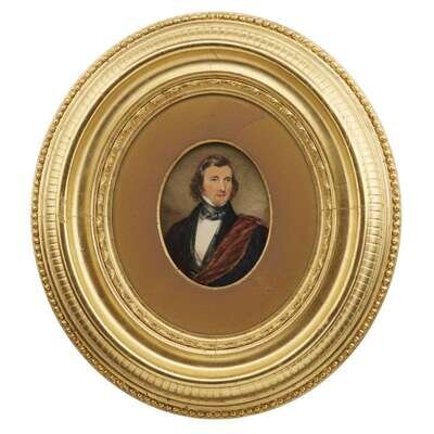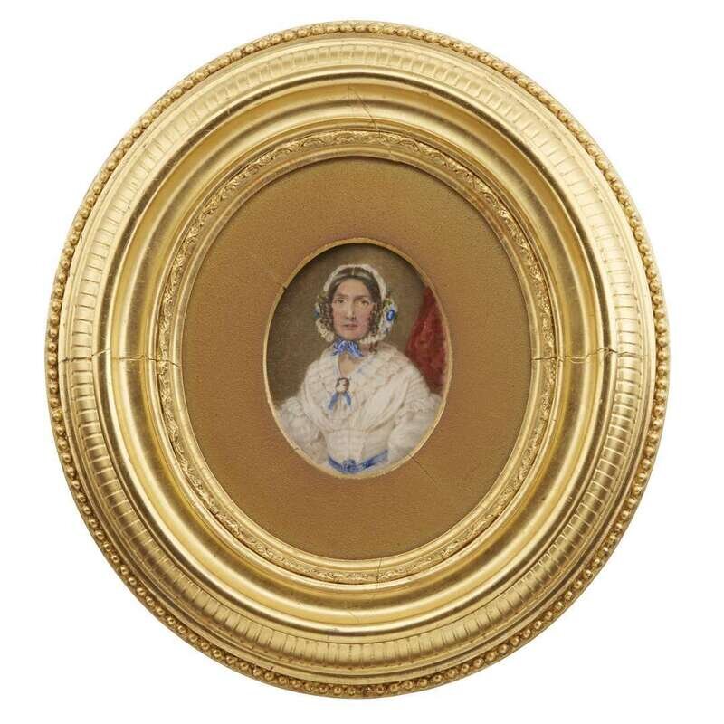 Watercolor on ivory, one frame retains printed paper label for "Wholesale and retail Looking Glass and Picture Frame manufactory. James S. Earle No. 2112 Chestnut Street, Philadelphia", and both retain printed labels from "The Pennsylvania Academy of the Fine Arts and the Pennsylvania Society of Miniature Painters Tenth Annual Exhibition."