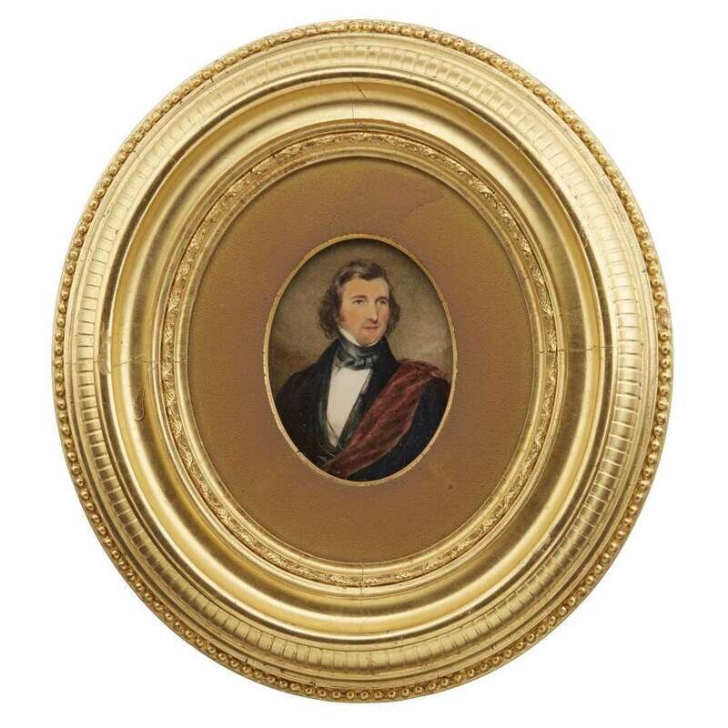George Lethbridge Saunders (English, 1807-1863) Pair of portrait miniatures: Dr. and Mrs. John Kearsley Mitchell