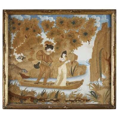 Needlework picture depicting The Lady of the Lake Godrey Folwell (1799-1855), Philadelphia, PA, circa 1814