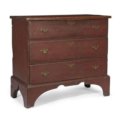 Red-painted pine chest of drawers Probably New England, 18th century