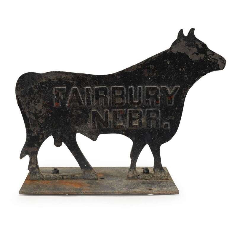 Painted cast iron "Fairbury Nebraska" bull windmill weight late 19th century