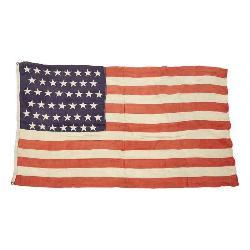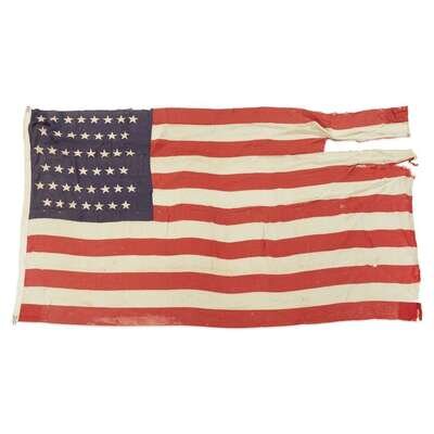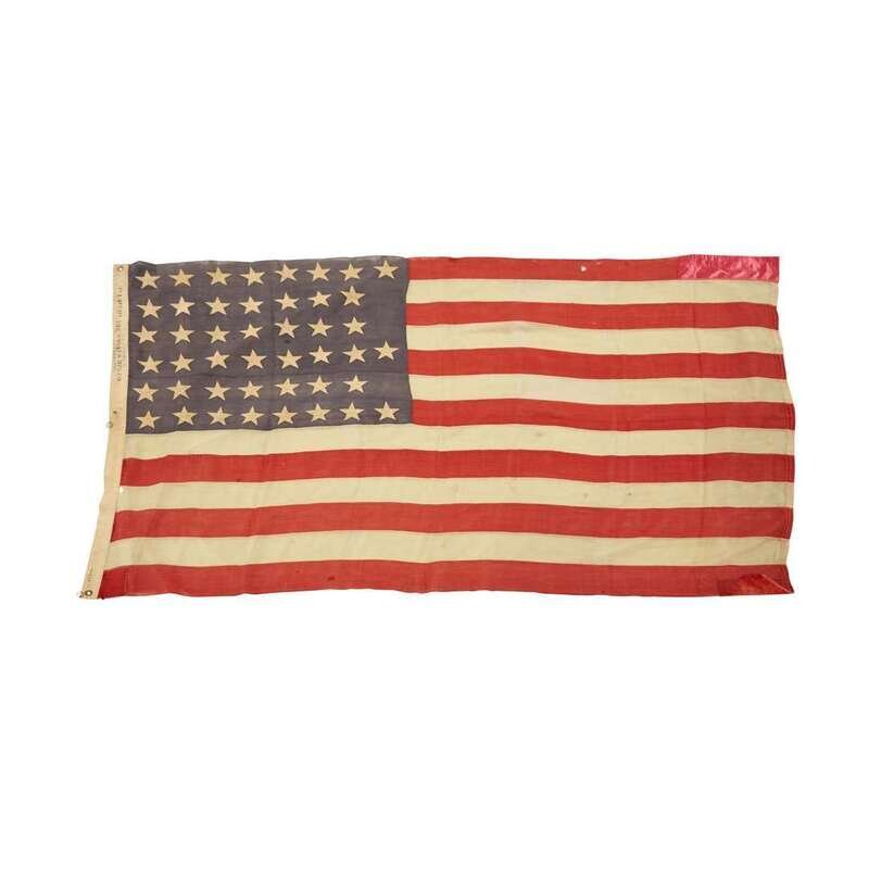 Four 45-Star American Flags and a French Tri-Color Flag O. H. Batchelder & Co., W. M. Horstmann, Philadelphia, and C. W. White Decorator, circa 1898-1900