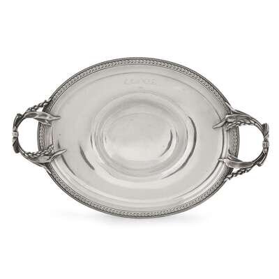 With cast wheat sheath handles, edges with beading and leaf design; engraved "C. C. from L. A. T. 1860"; marked to underside.