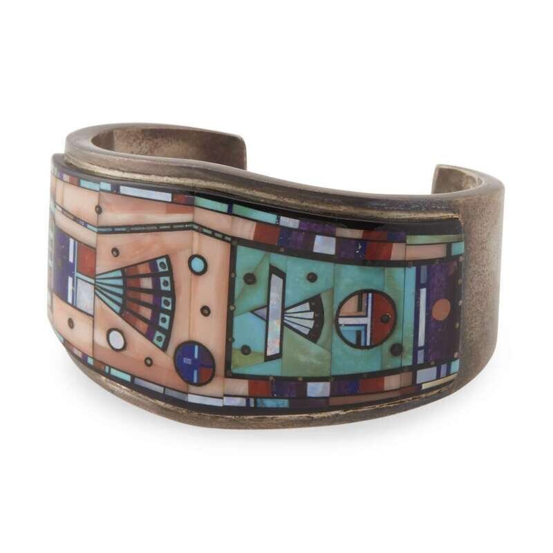 Navajo sterling silver and inlay bracelet Ervin P. Tsosie, 20th century