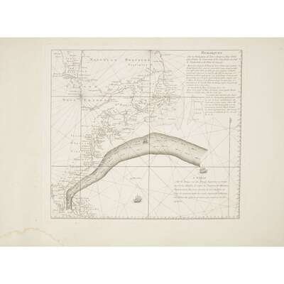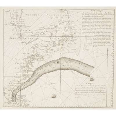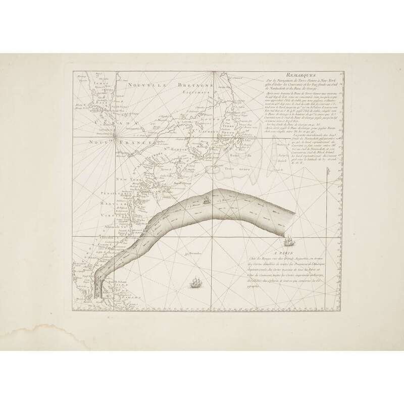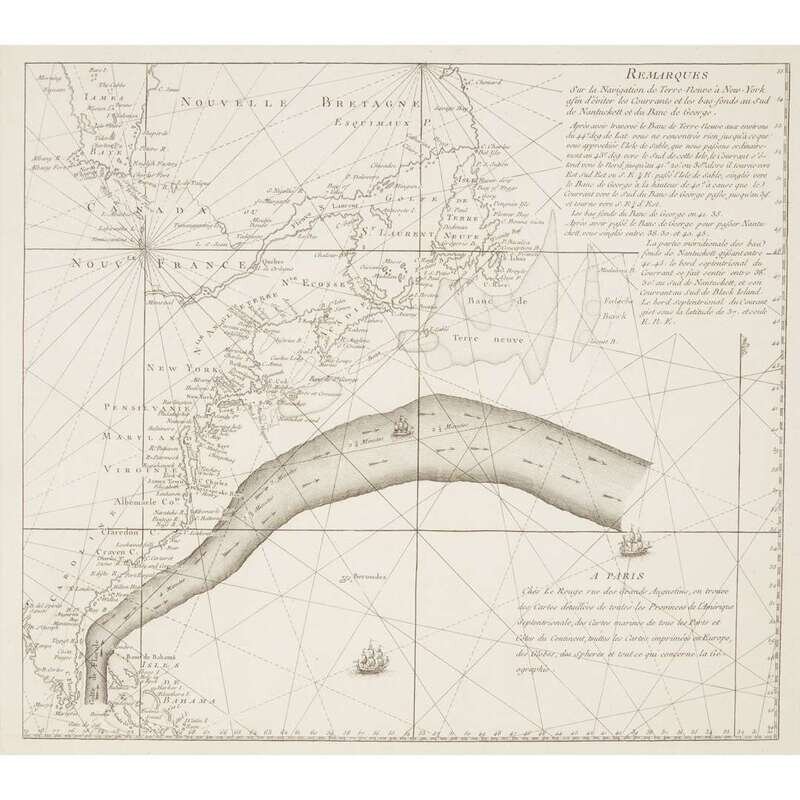 A Benjamin Franklin owned Chart of the Gulf Stream, Remarques Sur la Navigation de Terre-Neuve a New -York afin d'eviter les Courrants et les bas-fonds au Sud de Nantucket et du Banc de George George-Louis Le Rouge, Paris, circa 1783