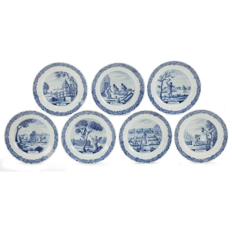 Group of seven Dutch Delft calendar plates Lampetkan Factory, under Widow Gerret Brower, circa 1750-1760