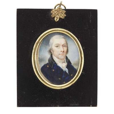 With paper backings inscribed, "Joseph Smith Husband of Ann Smith and Father of Charles Smith aged 35 years Oct. 21st 1837/ Joseph Smith born Cranbrook Kent Charles Smith born Allerton Kent", watercolor on ivory, framed.