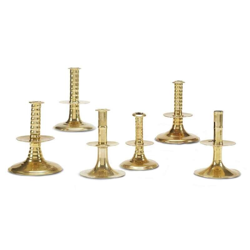 Group of six rare "trumpet base" candlesticks English, mid-17th century