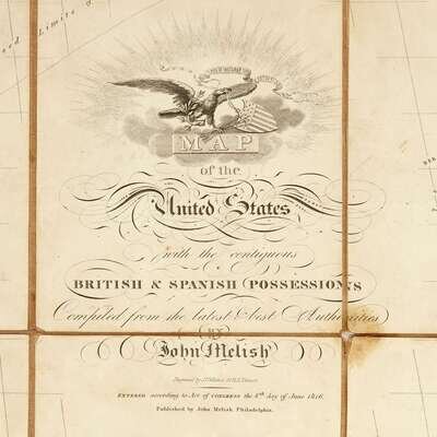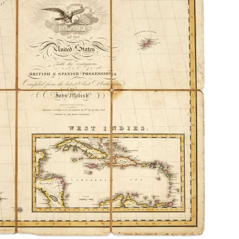 Map of the United States with the contiguous British & Spanish Possessions Compiled from the latest & best authorities. Philadelphia John Melish (Scottish/American 1771-1822) First Edition, 5th State (Ristow), 1816