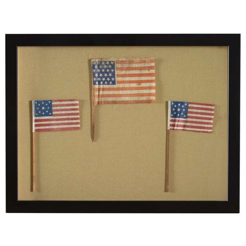 Two 13-Star American parade Flags and a 27-Star American parade Flag commemorating Florida statehood probably 1876