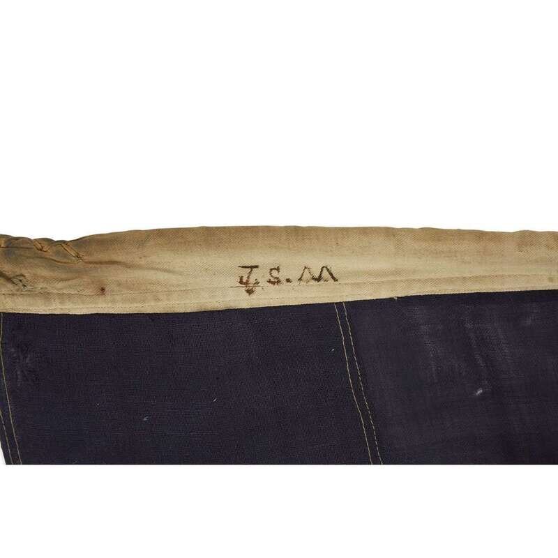 The first, hand-sewn, single appliqued cotton stars arranged in a 8,7,8,7,8 pattern on a wool bunting canton, machine-sewn wool bunting stripes, canvas hoist retains rope, hoist inscribed, "Mairs"; the second, with single appliqued stars arranged in 8,7,7,7,7,8 pattern on a four-part wool bunting canton, machine-sewn wool bunting stripes, canvas hoist retains rope and inscribed with the initials, "J.S.M."; the third, with hand-sewn, single appliqued cotton stars arranged in an 8,7,8,7,8,7 pattern on a two-part wool bunting canton, machine-sewn wool bunting stripes, canvas hoist with two brass grommets, stenciled, "Annin & Co., 99/101 Fulton St. N.Y."