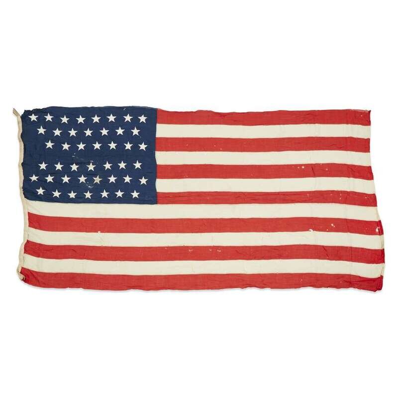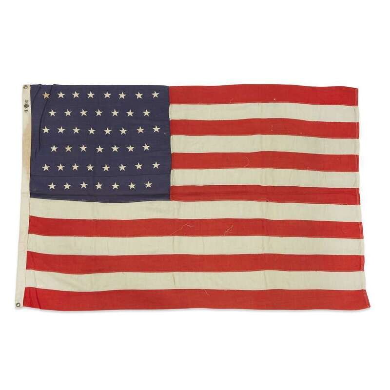 A 44-Star American Flag commemorating Wyoming statehood and two 45-Star American Flags commemorating Utah statehood 1891-1908