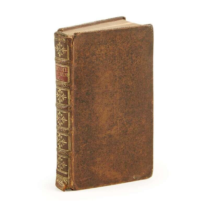 Leiden: De'Imp. d'Elie Luzac, 1748. Presumed second edition. 12mo. (20), 109 pp. Contemporary calf, stamped in gilt, red morocco spine label, front joint starting, rear joint rubbed, boards lightly rubbed, head of spine chipped, foot of spine slightly torn; edges stained red; marbled endpapers; text lightly spotted; Cholmondeley Library book-plate on front paste-down. [Stoddard 31] Bound with: (La Mettrie, Julien Offray de) L'Homme plus que machine Londres, 1748. Presumed first edition. (8), 140 pp. Author sometime given as Elie Luzac and location as Holland. Text lightly spotted. ESTC 006065851.