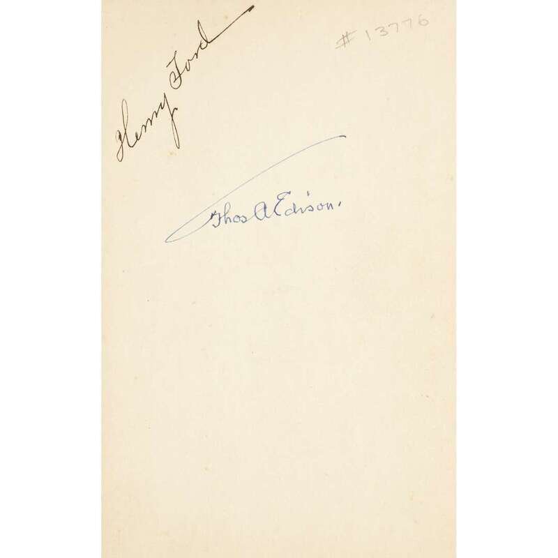 New York: Cosmopolitan Book Corporation, 1930. First edition. 12mo. (10), 1-(122) pp. Signed by Ford and Edison on front free endpaper. Illustrated with frontispiece and three plates. Publisher's quarter beige cloth over black paper-covered boards, stamped in black, slightly cocked, spine ends frayed, corners worn and bumped, front boards slightly soiled; lacking dust-jacket; prelims foxed, plates foxed, text toned.