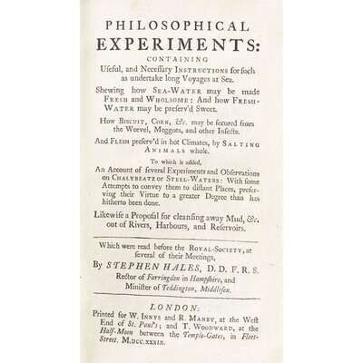 [Science, Medicine & Mathematics] Hales, Stephen Philosophical Experiments: Containing Useful and Necessary Instructions for such as undertake long Voyages at Sea...