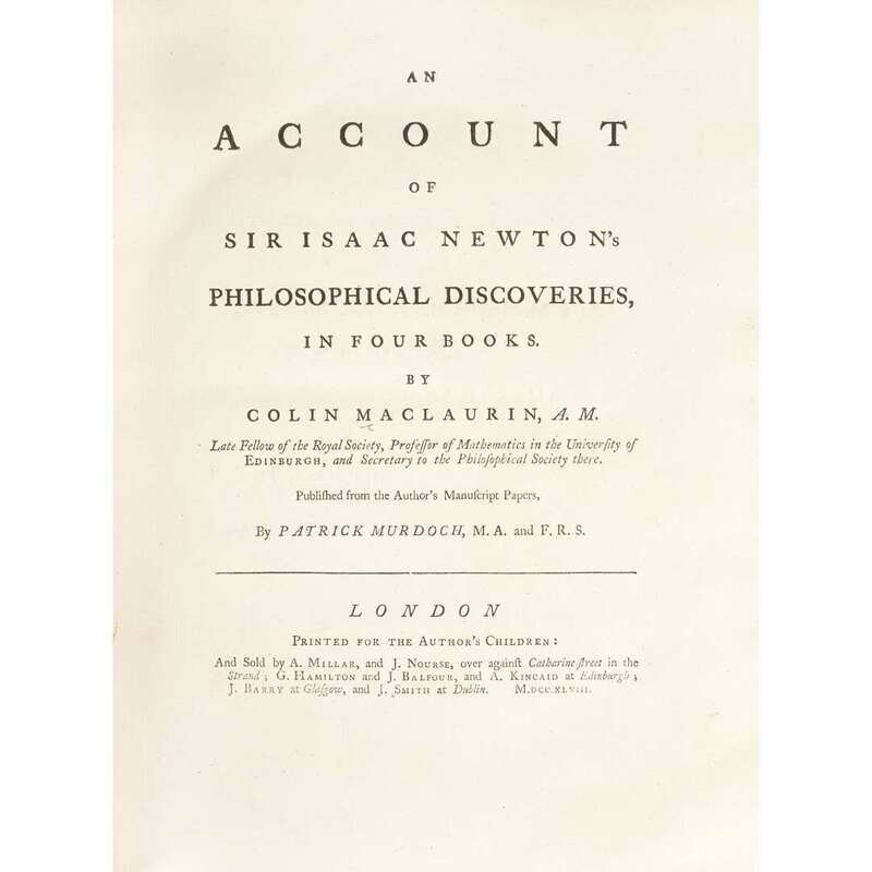 [Science, Medicine & Mathematics] MacLaurin, Colin An Account of Sir Isaac Newton's Philosophical Discoveries, In Four Books