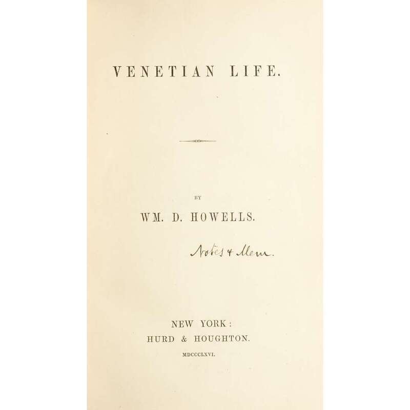 [Autographs & Manuscripts] Howells, W(illia)m. D(ean). Venetian Life