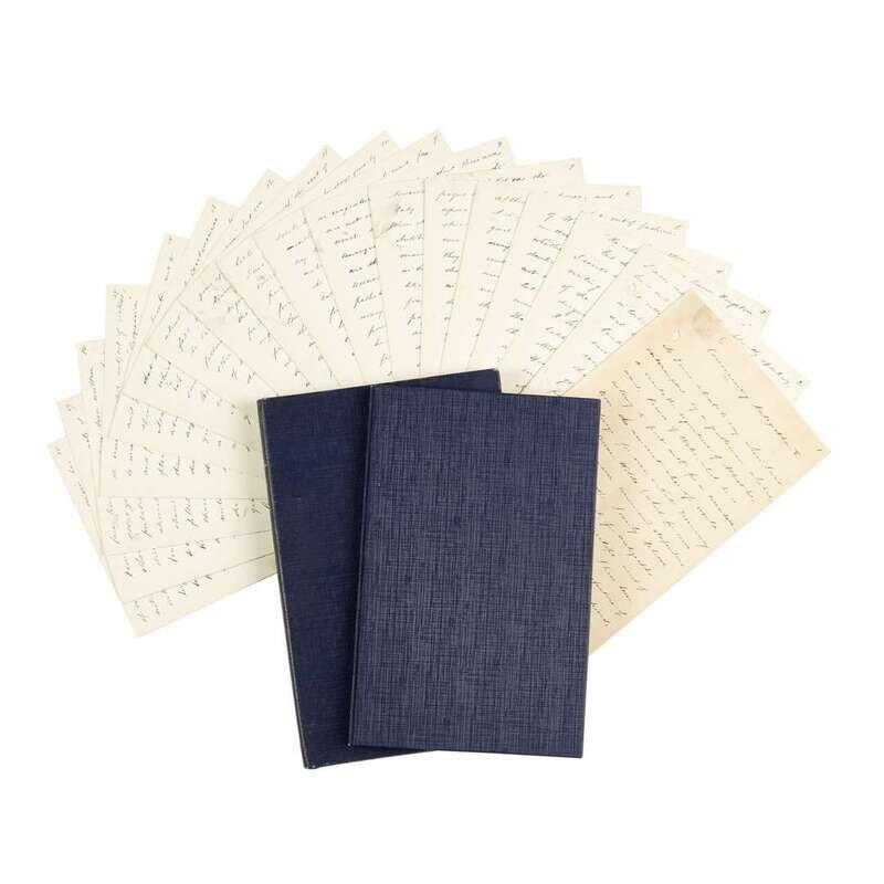 (New York), no date (ca. 1912). 12mo. 18 pp. Autograph manuscript of "Concerning Autographs V", featured in The Collector: A Magazine for Autograph and Historical Collectors, Vol. XXV, No. 7, May, 1912, and signed "Adrian H. Joline". Loose sheets; stab hole at top left corner of each sheet, several leaves toned, some scattered soiling; in blue cloth slip case and chemise.