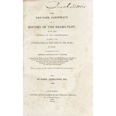 [African Americana] Horsmanden, Daniel The New York Conspiracy, or a History of the Negro Plot, with the Journal of the Proceedings against the Conspirators at New York in the Years 1741-2