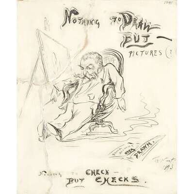1893. Original pen and ink drawing on illustration board.10 1/8 x 8 9/16 in. (258 x 215 mm). Slightly soiled, repaired vertical tear through length of left and center of drawing.