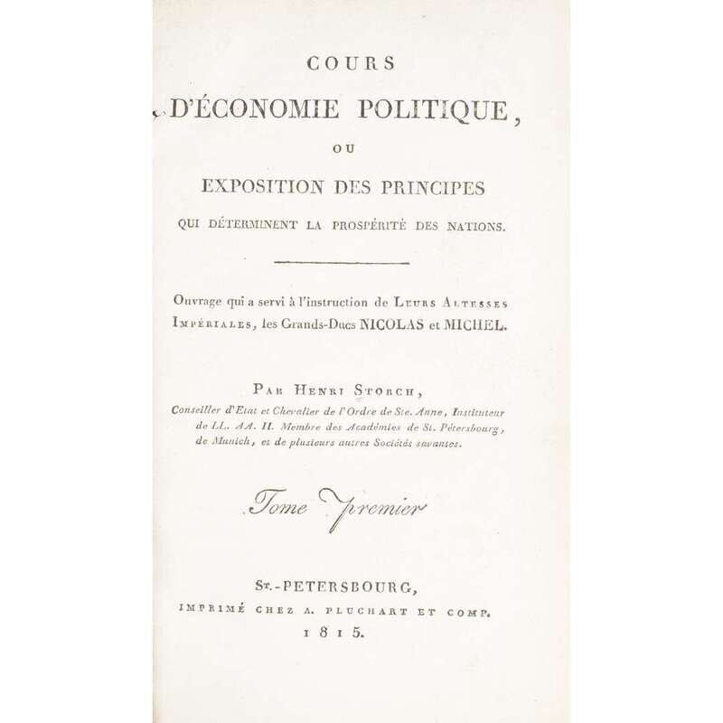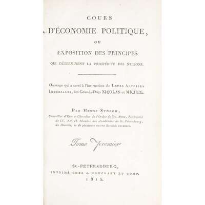 [Economics] Storch, Henri Cours d'economie politique, ouexposition des principes qui determinent la prosperite des nations