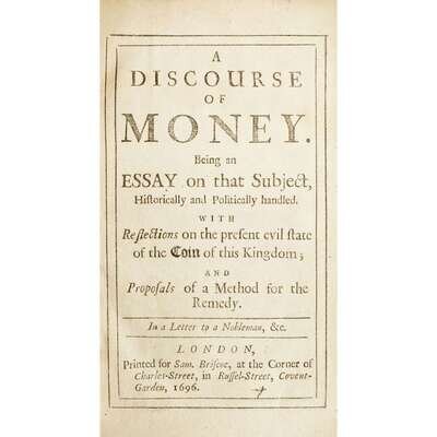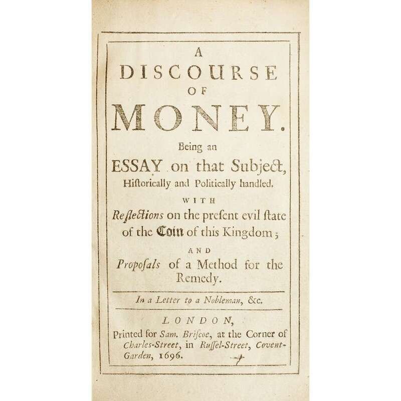 [Finance] (Briscoe, John) A Discourse of Money. Being an Essay on that Subject, Historically and Politically handled...