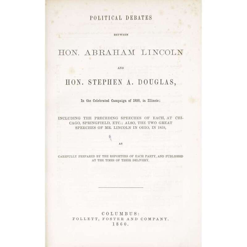 [Americana] [Lincoln, Abraham] Political Debates Between Hon. Abraham Lincoln and Hon. Stephen A. Douglas, in the Celebrated Campaign of 1858, in Illinois...