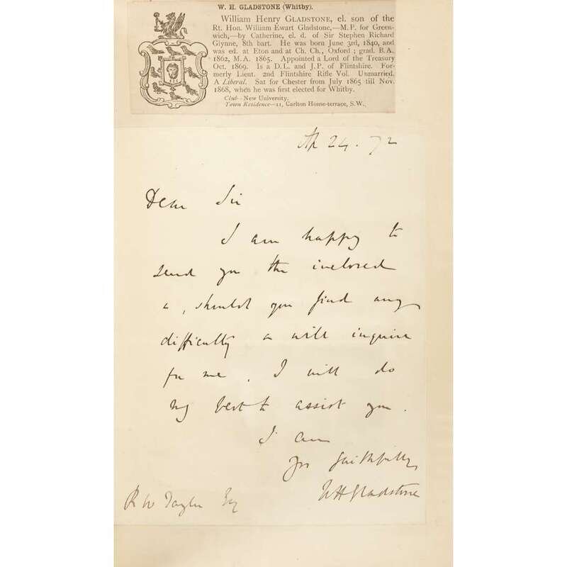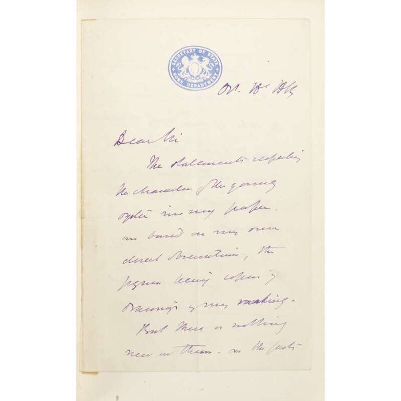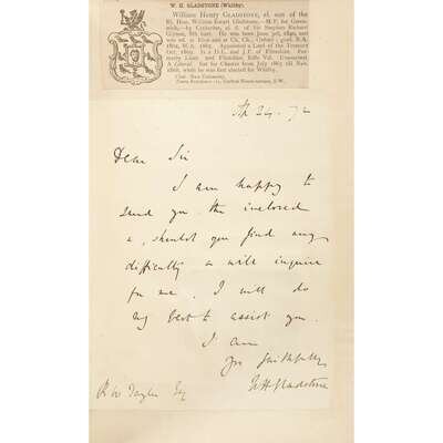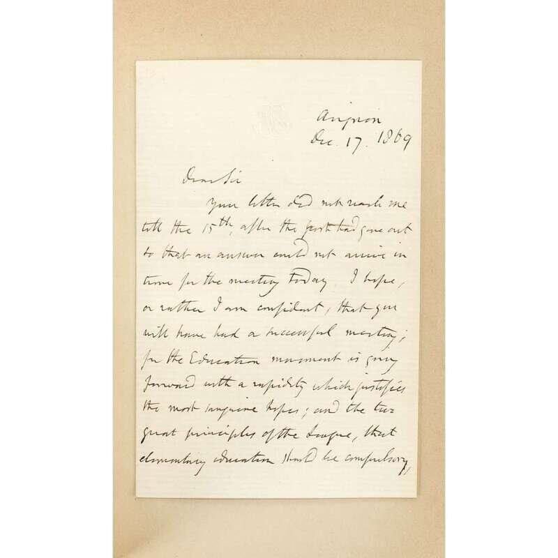 London: Macmillan and Co., Limited, 1903. In eight volumes. First edition. 8vo. Extra-illustrated with numerous tipped-in plates and original letters, including from Gladstone, J.S. Mill, Jeremy Bentham, Benjamin Disraeli, T.H. Huxley, and many others (a previous collator notes, "the insertion of 427 portraits, views, original letters, etc"). Full blue crushed levant, decoratively stamped in gilt, small chip in headcap of first volume; dentelles elaborately stamepd in gilt; top edges gilt, other edges untrimmed; purple endpapers; by Morrell. Scattered dampstaining to plates and letters; scattered minor foxing to text. A handsome set.