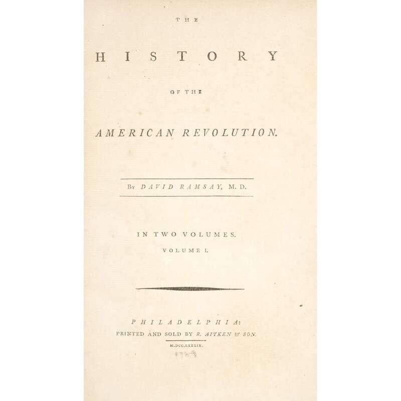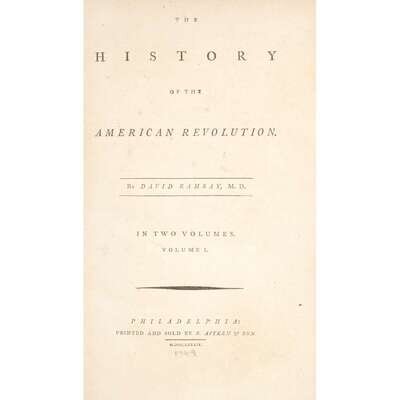 Philadelphia: R. Aitken & Son, 1789. In two volumes. First edition. Tall 8vo. vi, 359; iv, 360 pp. Mid-19th century three-quarter black morocco over marbled paper-cverd boards, stamped in gilt, joints rubbed; top edge gilt, other edges untrimmed; title-page in each volume lightly to moderately toned; light spotting and some foxing to text. Howes R 35; Evans 22090.