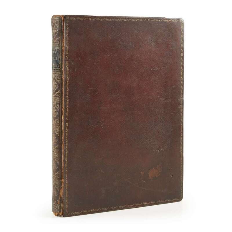 Oxford: At the Clarendon Press, 1759. First edition, large paper copy. Large 4to. (4), lxxvi, (4), 86 pp. Illustrated with engraved dedication leaf, engraved initials illlustrating buildings at Oxford, and large engraved tailpieces. Contemporary full Russia, decoratively tooled in gilt, front joint starting, small spine end losses, light wear to corners, abrasions and soiling to front and rear boards; marbled edges; matching marbled endpapers; in modern brown linen-covered slip case. Slight offsetting from initials and tailpieces; minor foxing to front free endpaper verso and first free leaf; darkening to edges of rear free leaf. Book-plate on front paste-down. Rothschild 406, ESTC T143723.