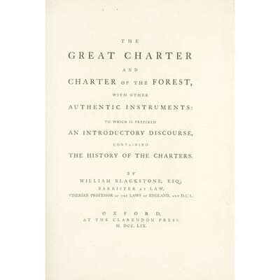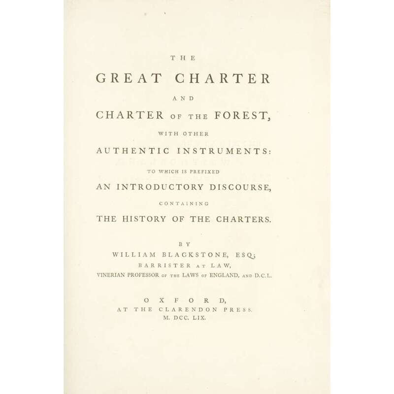 [Law] [Magna Carta] Blackstone, William The Great Charter and Charter of the Forest, with other Authentic Instruments: to Which is Prefixed an Introductory Discourse, Containing the History of the Charters