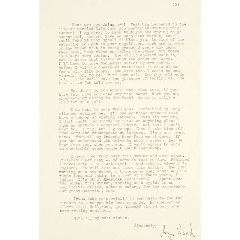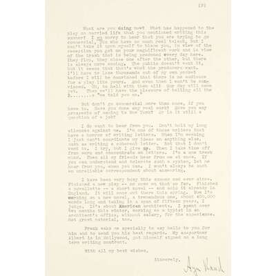 [Literature] Rand, Ayn Typed Letter, signed