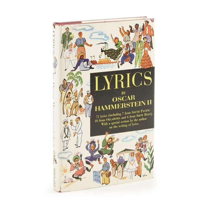 New York: Simon and Schuster, 1949. First edition. 8vo. Signed and inscribed by Hammerstein, quoting lyrics from the song "Make Believe" from Show Boat: "For Lionel Aucosin who requested/that I write out the refrain of/'Make Believe' before he had seen/my handwriting. 'Only make believe I love you,/Only make believe that you love me./Others find peace of mind in pretending-/Couldn't you? Couldn't I? Couldn't we?/Make believe our lips are blending/In a phantom kiss, or two or three./Might as well make believe I love you/For to tell the truth, I do -'/(Translation on p. 167)/With all good wishes-/Oscar Hammerstein." Publisher's brick-red cloth, minor wear; in pictorial dust-jacket, chipping to top edge and a few short closed tears. A very good copy.