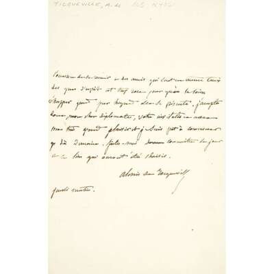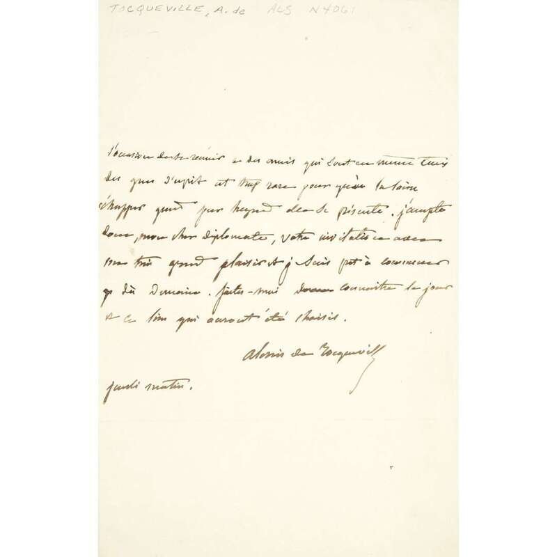 [Autographs & Manuscripts] Tocqueville, Alexis de Autograph Letter, signed