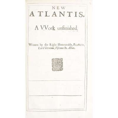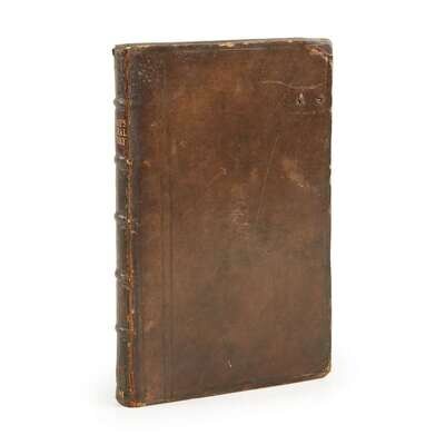 London: Printed for William Lee, 1658. Seventh edition. Folio. (16), 218, (26), 36, (8), 64 pp. Illustrated with engraved frontispiece portrait of Bacon, and additional engraved title-page. 18th-century full polished brown calf, stamped in blind and in gilt, red morocco spine label, two holes from old--and now removed--clasp on front board, slightly scuffed, front and rear joints worn, spine ends chipped, corners slightly worn; all edges trimmed; text leaves trimmed, scattered creasing to corners, old ownership signature at head of engraved title, some manuscript on title-page; with two book-plates on front paste-down. [Wing B-329]; ESTC 006093881.